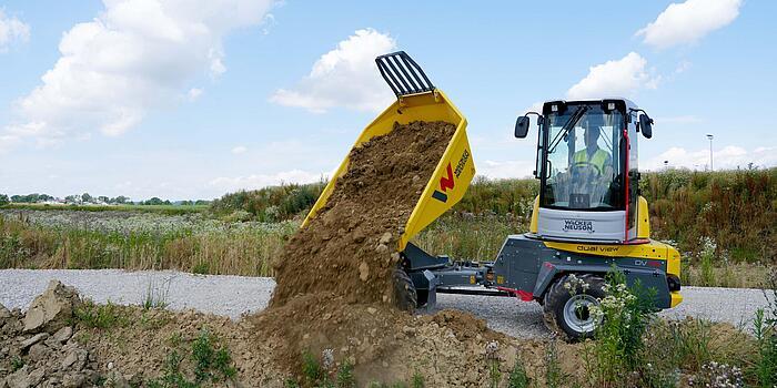 The dumper models DW20, DW30, DW40, DW60, and DW90 have been completely revised and are now even safer. New features, like the camera washing system for the front and rear cameras, seatbelt monitoring including the start release, skip and tilt monitoring, as well as the hill-hold and auto-stop functions, are now available for wheel dumpers with a payload between two and nine tons. Object monitoring "Active Sense Control" will also be available as an option for dumpers by Wacker Neuson from the end of the year: Where there is danger of a collision, it automatically lowers the speed of the dumper, even bringing it to a stop. The system automatically calculates the route combined with the speed and immediately takes effect when an obstacle arises on the collision course. The system can be muted for parking assist functions, unloading or loading, as well as the operation of trailers, it is therefore overridden.