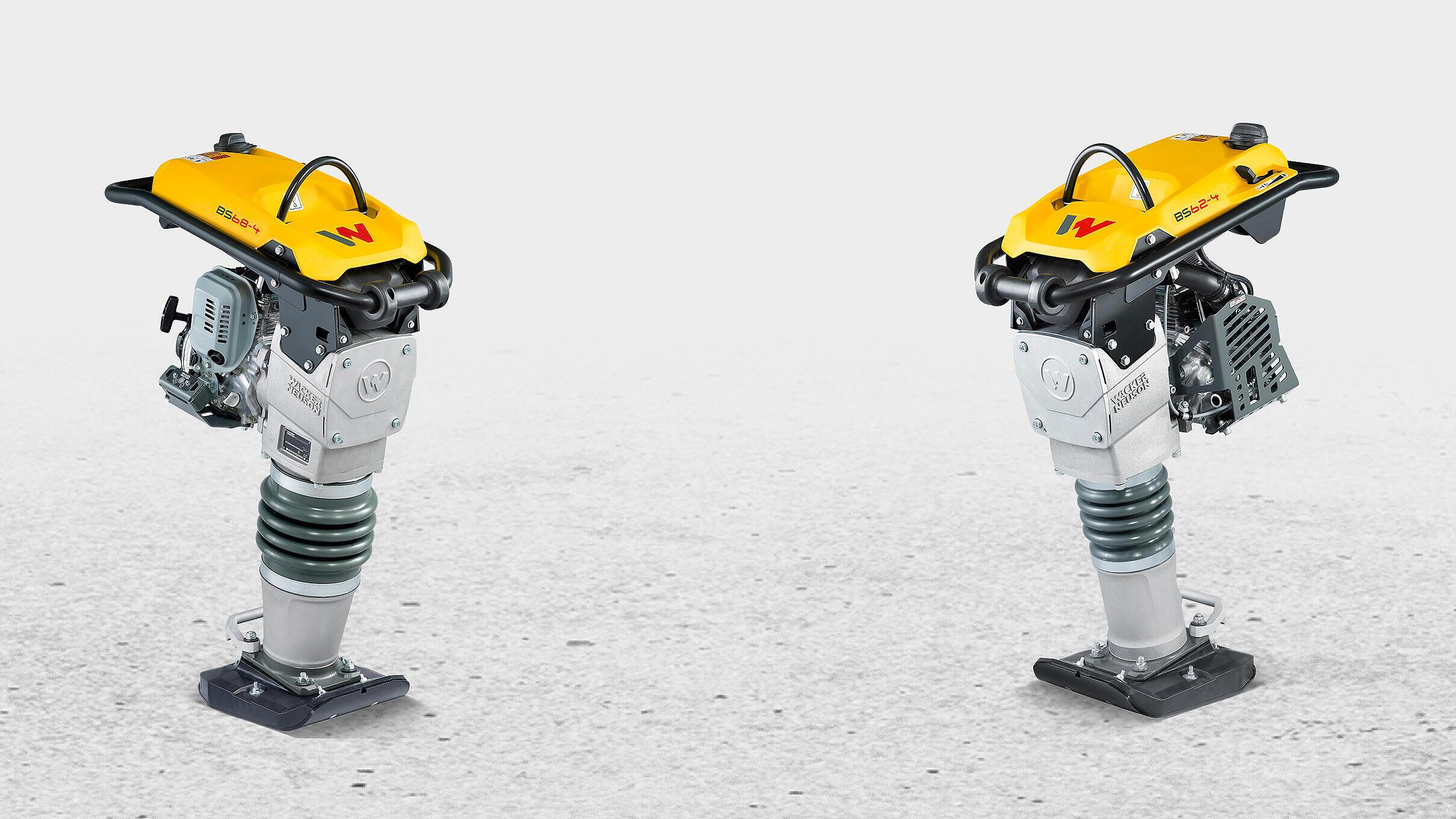 The new 4 stroke rammers BS62-4 and BS68-4 provide an increased compaction performance thanks to the higher impact frequency and impact force. The efficient air cleaner system with high filter area offers very reliable filter efficiency with high capacity, therefore a continuously high engine output. The models simultaneously have an improved guide handle, which provides good balance in work mode and increased comfort during operation.